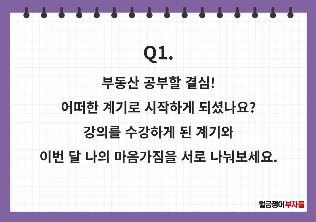 조장톡방에 들어가면 다른 조장님, 월부 튜터님, 그리고 담당 커뮤니티매니저가 있을 거예요. 조장님과 조원분들께 먼저 인사를 건내주세요.