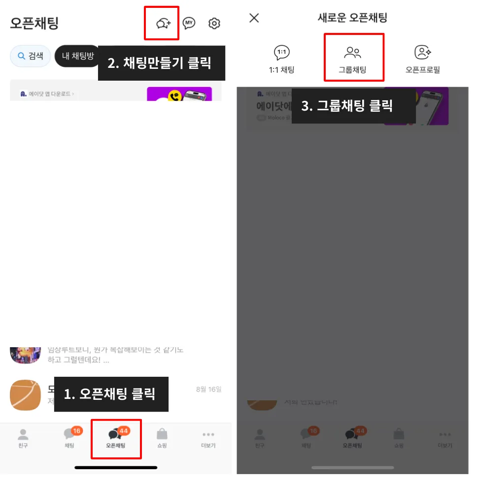 휴대폰으로 오픈채팅방 개설하기 (추천)