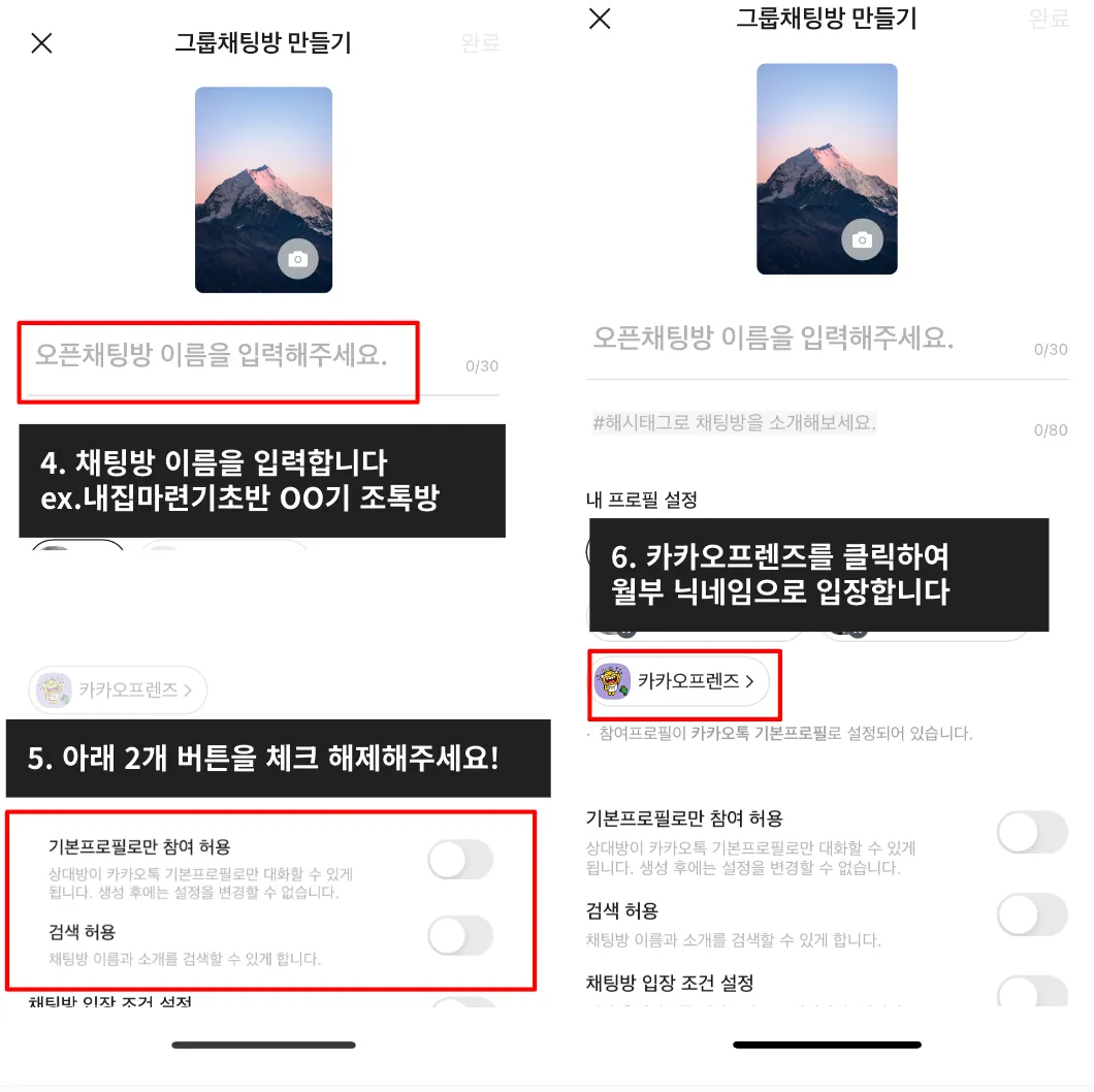 4. 조원분들이 입장하기 전, 미리 조톡방을 세팅해둬요