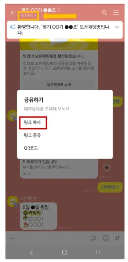 (1) 먼저 카카오톡을 들어가서 가운데 있는오픈채팅 아이콘을 눌러주세요.