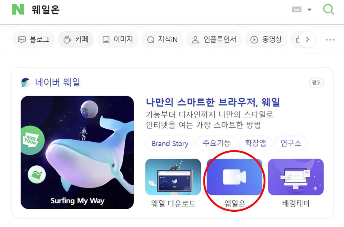 네이버 검색창에 '웨일온'을 검색하여 다운로드 받으시면 됩니다.