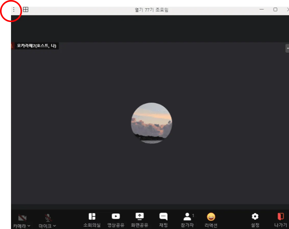 하단 메뉴를 보시면 카메라, 오디오 on/off 설정을 할 수 있어요.